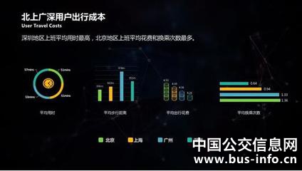 四、北上广深一线城市相比较,深圳地区白领上班平均用时最高,北京地区上班人群平均花费和换乘次数最多。