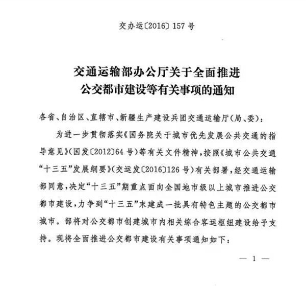 关于全面推进公交都市建设等有关事项的通知