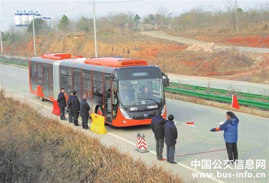 据介绍,BRT公交车是由汉企——扬子江汽车集团采用自主技术研制,为纯电动铰接车。车身颜色为橘红色,因采用了更为轻便的车用材料等,车辆自重比同级别的燃油公交车降低20%,整车能耗降低15%。