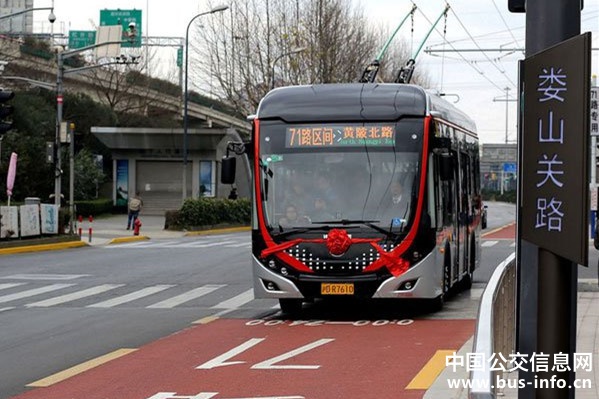 2017年2月,由宇通制造的18米双源无轨电车正式投入首条上海中运量公交线路——71路载客运行。作为上海中运量公交示范工程,该线路全长17.5公里,设车站25组,全线采用专用道运行辅以局部路段混行的方案,运行线路集中在上海东西交通干线延安路。上海首条中运量公交线路的载客运营也意味着上海巴士公交(集团)先行采购的68台宇通双源无轨电车正式“上岗”,助申城中运量公交探路大都市交通改革。
