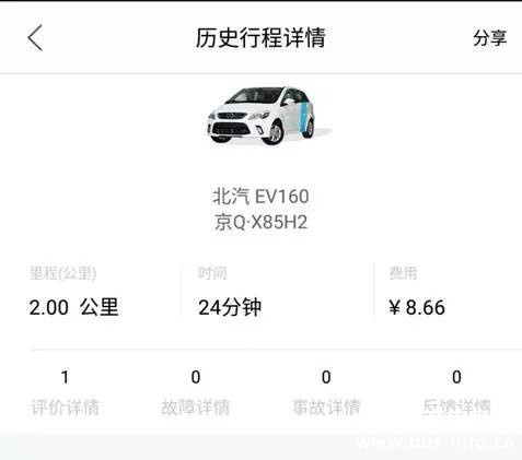 打开APP,选择好取车点和还车网点后,即可选择可用车辆,系统会显示可用汽车的车型、车牌号、续航里程等信息,并会免费保留5分钟取车时间,超时将自动开始计费。这家“共享汽车”APP显示的特价收费标准为1.5元/公里,0.15元/分钟。