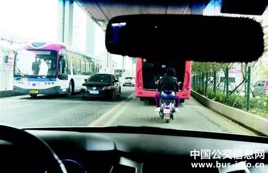 私家车被许可驶入后,因廊道内单向仅1—2股车道,借道超车的情况时有出现。在民族大道站,记者看到,公交车靠站时,紧跟其后的私家车会直接开上对向车道超车。因对向正好有电动车驶来,险些造成交通事故。