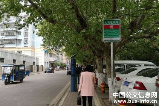 在人民医院站,公交9路车32个站点名挤在宽度约50厘米的站牌上,而这个只有一路公交车的站牌已经是简阳市区内字比较大的站牌了。