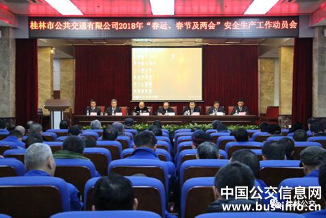为了更好的贯彻落实省、市政府及市交通运输局春运工作精神,部署我公司春运工作,1月31日下午公司召开了“公交公司2018年春运动员会”,公司领导班子、分公司领导班子、各部门负责人、生产部门主办等近100人参加。