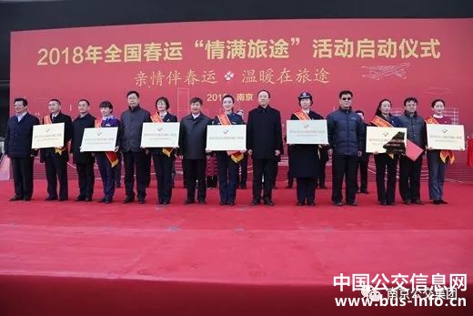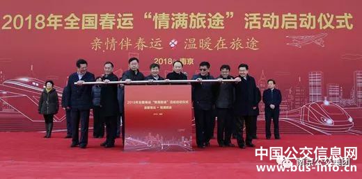 2018年2月1日春运首日上午9时,交通运输部、公安部、国家安全监管总局、中华全国总工会、共青团中央等五部委在南京南站客运枢纽举行了2018年全国春运“情满旅途”活动启动仪式。