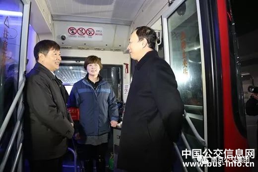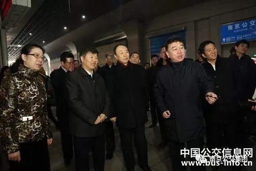 启动仪式后,刘小明副部长等领导检查了南京南站公交场站,了解了南京南站公交场站人车分流情况并走上公交车和公交驾驶员亲切交流。