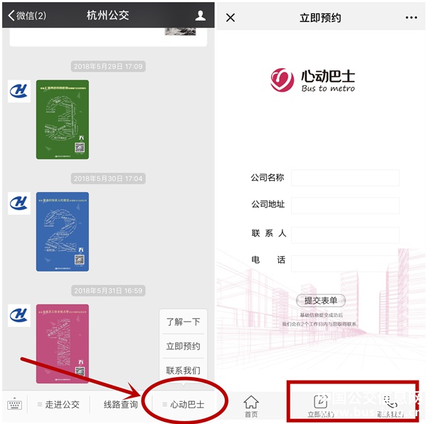 目前,“心动巴士”已开通了网上预约及电话预约两种模式。打开杭州公交官方微信,在主菜单底部选择“心动巴士”,点击进入“立即预约”,即可进行线上预约。同时,也开通了专属定制热线:0571-85191122。