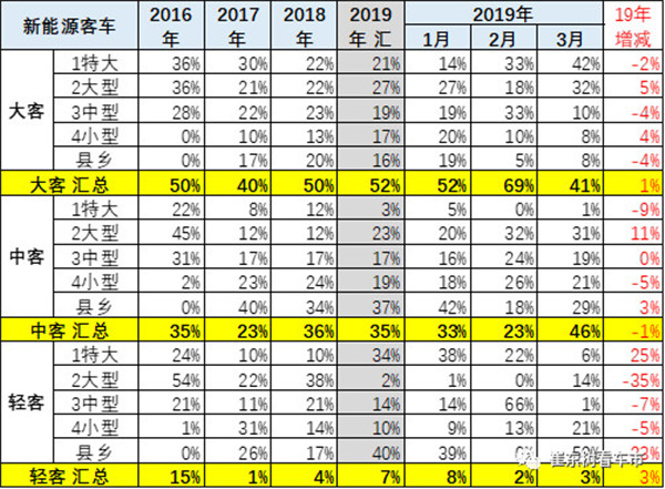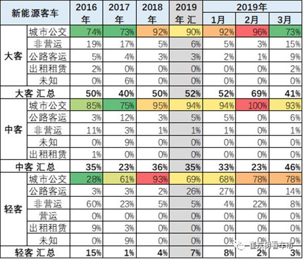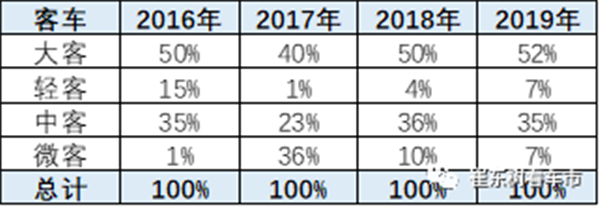 新能源客车的城市公交类占比逐步提升。大客2019年公交的占比相对2018年1季度在小幅提升。