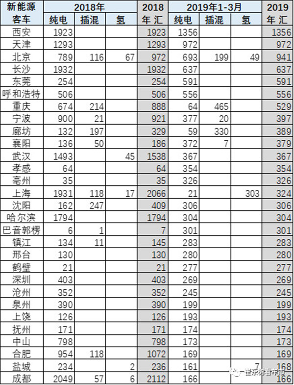 2019年1-3月的西安、天津、呼和浩特、北京等北方省会城市的的客车表现较好。部分城市19年1-3月销量超越18年全年。