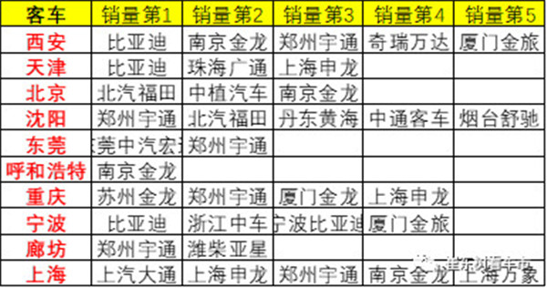 客车企业数量众多,主力企业参与并非很强。郑州宇通、比亚迪、湖南中车和南京金龙等表现较强等表现突出。(崔东树)