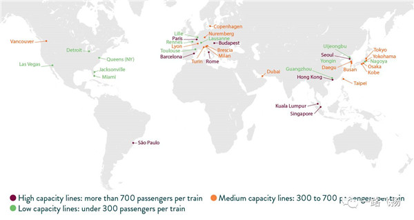 尽管全自动驾驶技术最初应用在低容量轨道线路上,但在过去十年,其开始应用于中运量和高运量系统中。目前,里程约占80%的全自动驾驶线路为大中运量线路,大运量线路主要集中在亚洲和欧洲,另外圣保罗4号线单向高峰小时超过32000名乘客,为全世界负载最多的线路之一。
