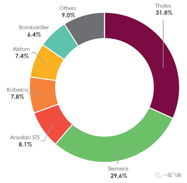 Thales拥有近250公里的自动化驾驶线路,是全自动驾驶线路的市场领导者,紧随其后的是西门子。