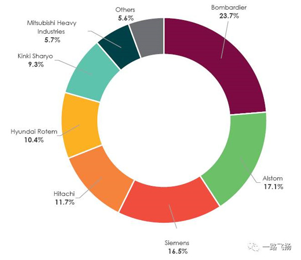 截止2016年,有10家车辆供应商为全自动驾驶线路服务。庞巴迪、阿尔斯通和西门子是领先的供应商,占所有全自动驾驶线路的60%。
