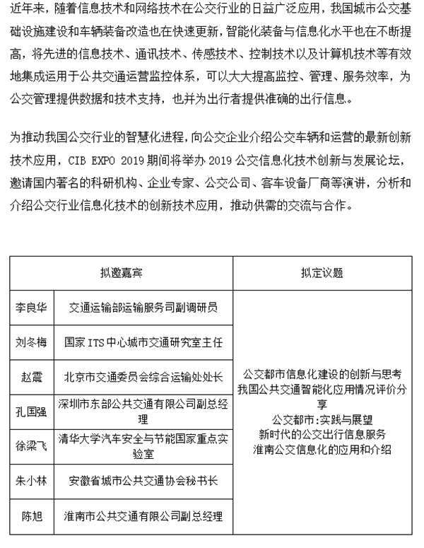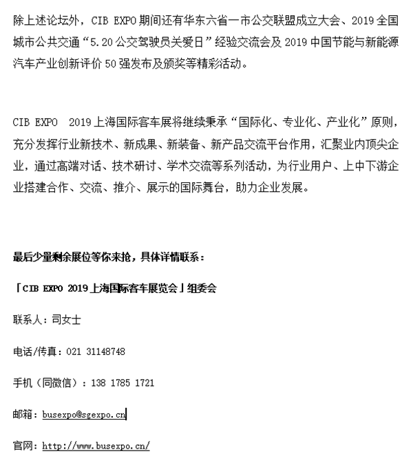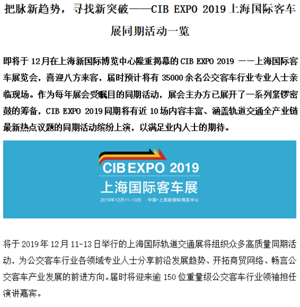 CIB EXPO 2019上海国际客车展同期活动一览