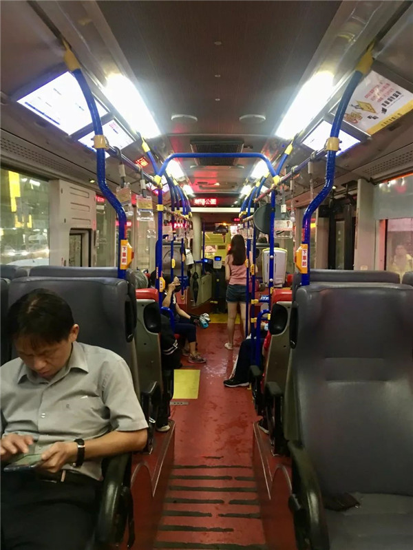 台湾称“公交车”为“公车”。台湾的公交车辆可以说是无障碍公车,车门底部有推拉踏板,使用时抽出,方便残障人士上下车。内部比较宽敞舒适,座椅比较舒服,几乎每个座椅旁边都有下车铃,方便到站乘客及时按铃。