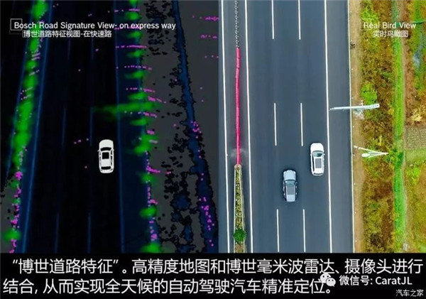博世打造了一套集硬件、软件和服务为一体的高精度定位解决方案,也是一套由基于卫星的绝对定位和基于博世道路特征的相对定位所组成的冗余定位方案,在天气恶劣或遮挡等不利条件下,这两种定位方案依也是相互校验的。