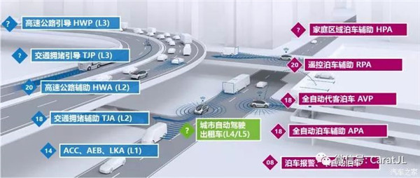 2018年,博世推出了最新的全自动泊车辅助(APA)和全自动代客泊车(AVP)。L2级的交通拥堵辅助/集成式巡航控制(TJA/ICA)功能也已量产,包括吉利博瑞GE(一万补贴)、长安CS55、荣威MARVEL X以及威马EX5等车型都已搭载。