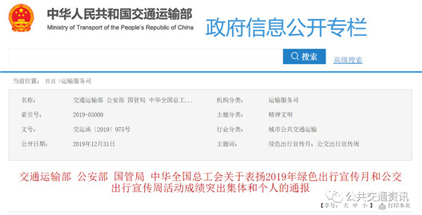——活动期间,各地区、各部门认真贯彻落实活动要求,以“公交优先、绿色出行”为主题,通过组织开展多样化、富有群众参与性的宣传活动,广泛动员社会各界参与到绿色出行行动中,涌现出一批成绩突出的服务集体和个人。为进一步发挥成绩突出集体、个人的示范引领作用,大力弘扬爱岗敬业、优质服务、无私奉献精神,交通运输部、公安部、国管局、中华全国总工会决定对北京公共交通控股(集团)有限公司第三客运分公司第十八车队等240个集体和韩云竹等305名个人予以通报表扬。