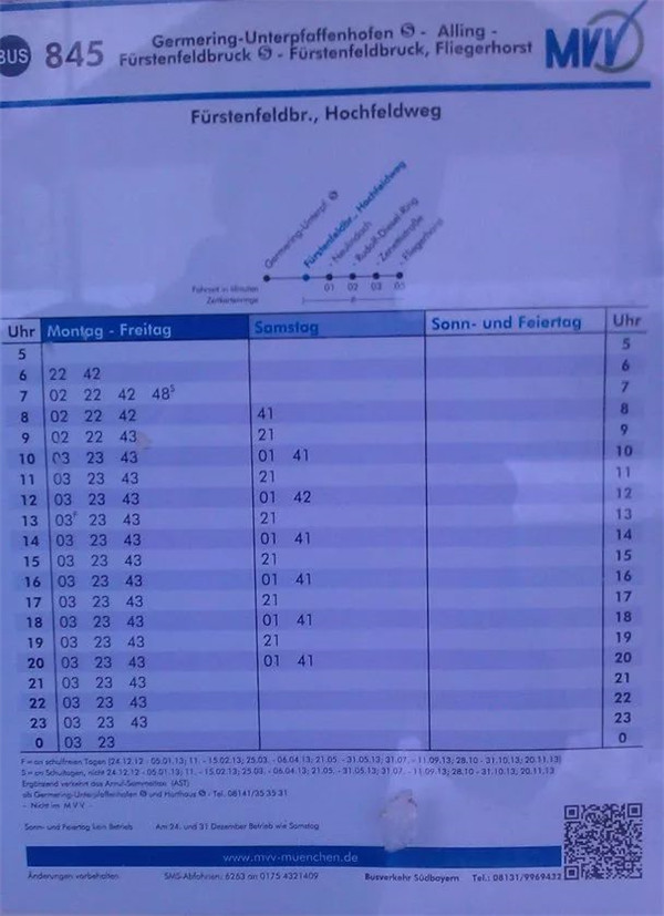 图6 慕尼黑公交车站的车次时间表