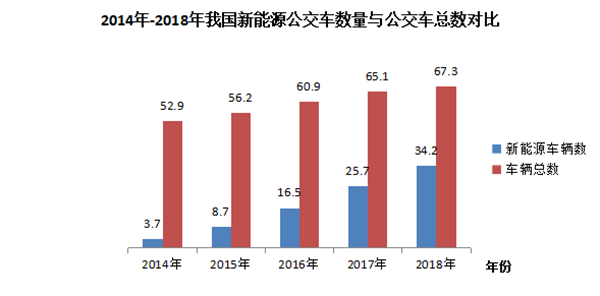 根据交通运输部统计,截至2018年底,我国新能源公交车辆34.19万辆,占公交车辆总数的50.8%,比2017年增长8.47万辆。到2018年,出租车中新能源汽车数量为4.64万辆,对比2017年新增2万辆。