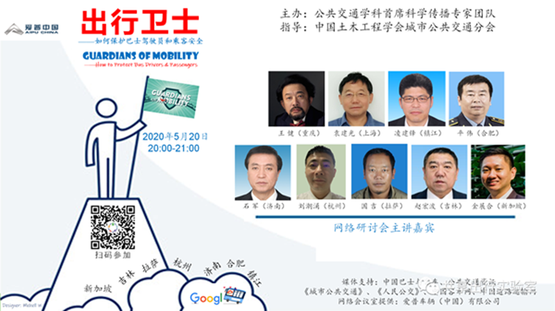 发起并推动《520全国公交驾驶员关爱日活动》的镇江市公共交通有限公司总经理凌建锋和安徽省城市公共交通协会理事长,合肥公交集团党委书记兼董事长、总经理平伟将总结公交驾驶员关爱日活动;山东省城市公共交通协会理事长,济南公交集团党委书记兼董事长石军、杭州公共交通下沙有限公司副总经理刘潮涌、拉萨市公交运营有限公司总经理国吉、吉林公共交通集团有限公司副总经理赵宏波,将分别介绍他们在应对新冠病毒疫情,如何做好公共交通运营,保障驾驶员和乘客安全的经验;新加坡南阳理工大学智慧城市与未来出行主管金展合先生也将参加网络研讨会并介绍他们的措施。