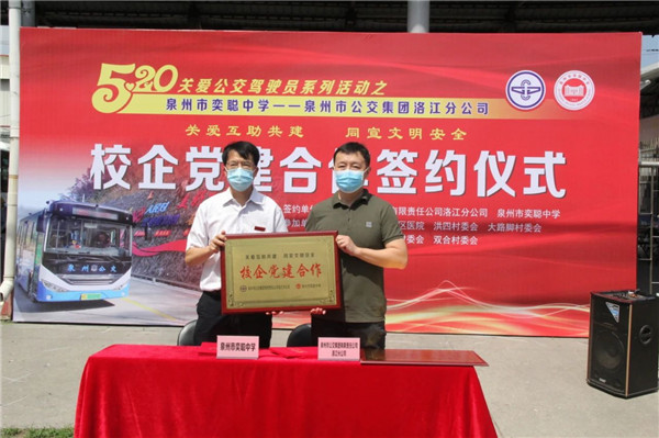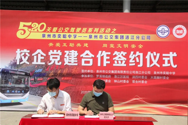 活动上,泉州公交集团洛江分公司与泉州市奕聪中学签订校企共建协议,今后洛江分公司将为泉州市奕聪中学开通至广桥和洪四村的校园直通车。
