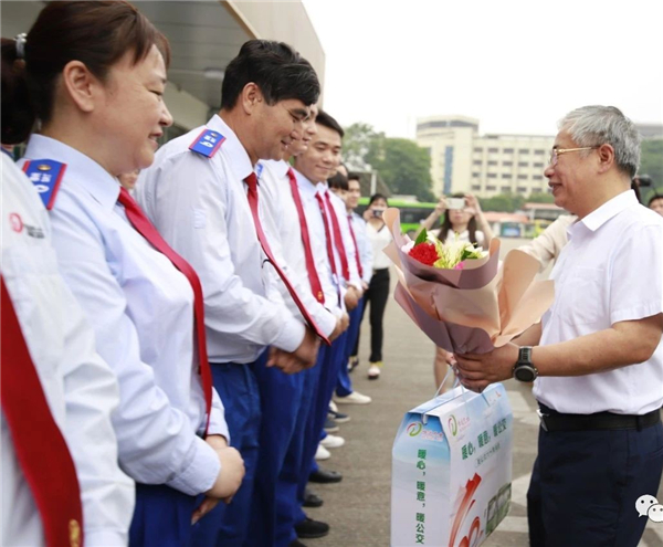 5月20日上午,柳州市委常委、常务副市长刘可一行到东园公交站看望慰问奋斗在一线的公交驾驶员,并为驾驶员们送上鲜花与祝福。