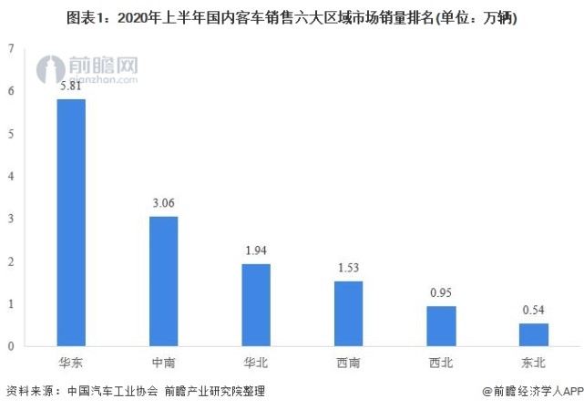 据中国汽车工业协会统计数据显示,2020年,从国内六大地区客车市场表现来看,1-6月,华东地区销售5.81万辆,同比增长4.09%;中南地区销售3.06万辆,同比下降7.89%;华北地区销售1.94万辆,同比下降9.32%;西南地区销售1.53万辆,同比下降23.18%;西北地区销售0.95万辆,同比下降24.16%;东北地区销售0.54万辆,同比下降44.14%。