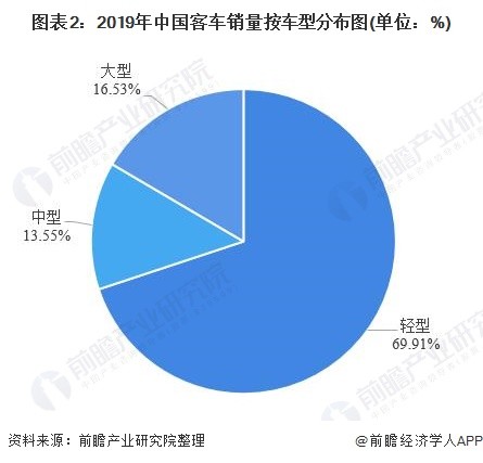 从客车客车上来看,目前,我国轻客销量遥遥领先,据中国客车网统计数据显示,2019年,我国大型客车销量为73419辆,占客车总销量的16.53%;中型客车销量为60172辆,占客车总销量的13.55%;小型客车销量为310433辆,占客车总销量的69.91%。
