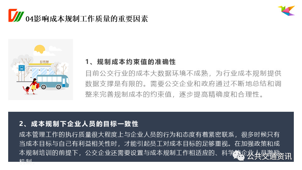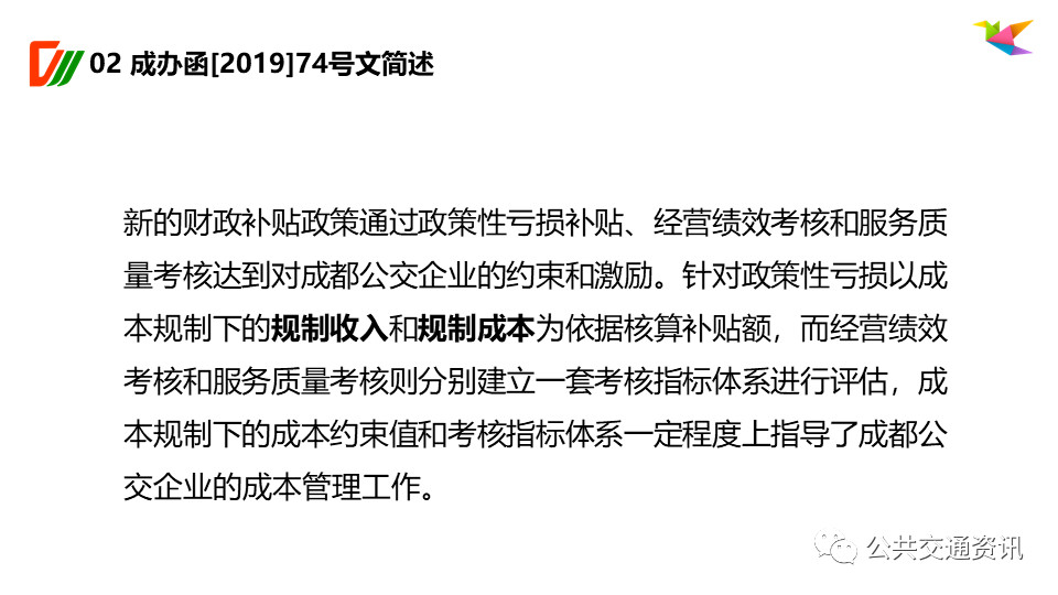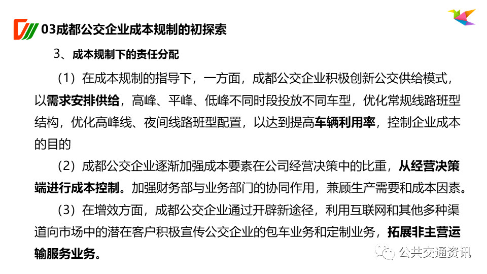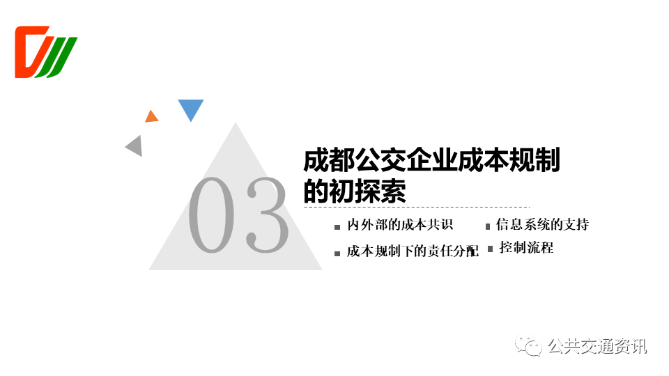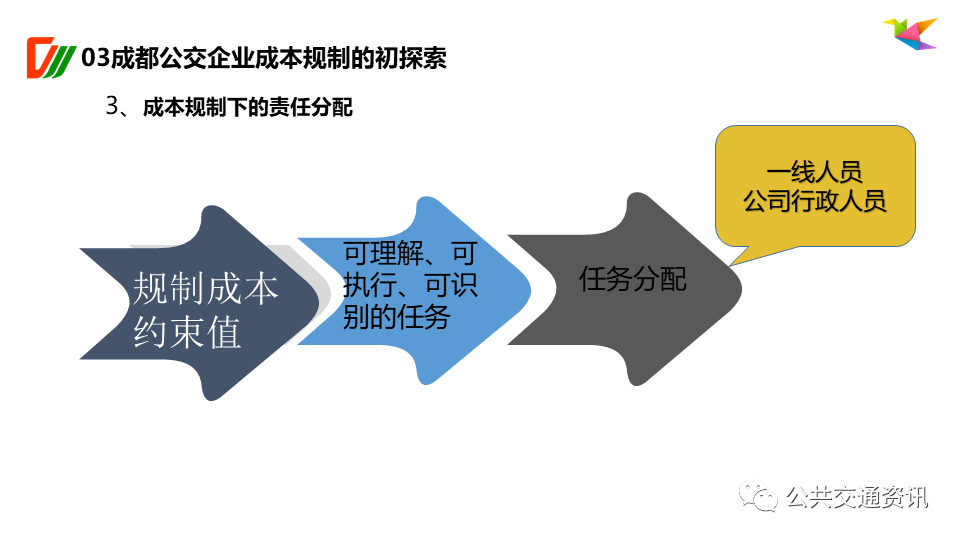 根据成办函[2019]74号文的文件精神,成都公交企业首先组织了公司管理人员对成本规制下的财政补贴政策的学习,分析了如何通过成本规制提升公司的经营管理。在学习和讨论的前提下,将成本规制工作转化为可执行的任务,抓住关键指标的控制,同时兼顾其他有效的成本管理工作,并实时对成本规制工作实况进行分析和调整。
