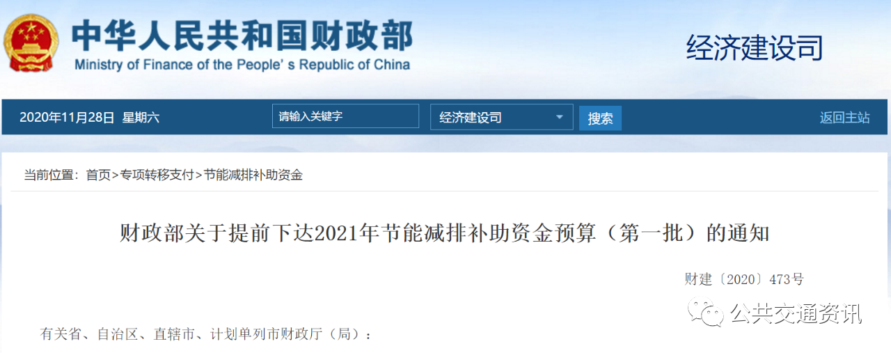 财政部关于提前下达2021年节能减排补助资金预算(第一批)的通知
