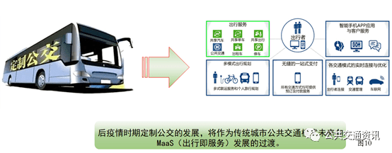 疫情后期提高运营效率降低定制公交的运营成本,将成为目前定制公交改革的目标之一。定制化程度越高,公共交通资源的利用率才可能最优,出行的出行效率与公共交通的运营效率就越高。定制公交背后更深层次的意义在于它是“预约出行”的一种方式,未来的后疫情时期定制公交的发展,将作为传统城市公共交通模式未来向MaaS(出行即服务)发展的过渡。