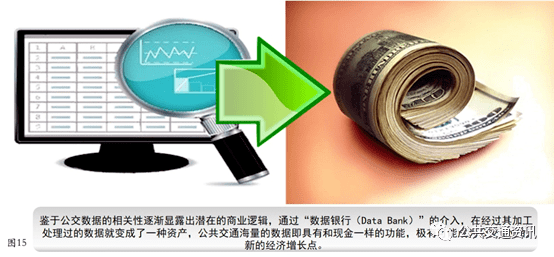 第三次工业革命的核心是信息革命。信息时代的产品就是数据,以数据为基础的产业形态称为数据经济。数据的价值决定着数据经济的产业规模和产业链。在数据经济的产业链中,从数据的采集,加工,整合,再到数据的存储,分析,数据的销售,每一个环节都可能产生巨大的经济效益。各地程度各异的公交智能化每时每刻都在产生海量数据,但从目前来看,公交企业积累的数据从形态来讲仅仅是一堆数字,没有通过数据产业链将数字变成数据,从而不可能将数据变成信息,最终从信息中产生出数据价值。事实上,数据资源是互联网时代的石油资源,数据作为企业一种“无形资产”的重要性变得比以往更加明显。数据产生的经济力量是企业新的盈利点。
