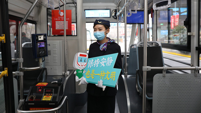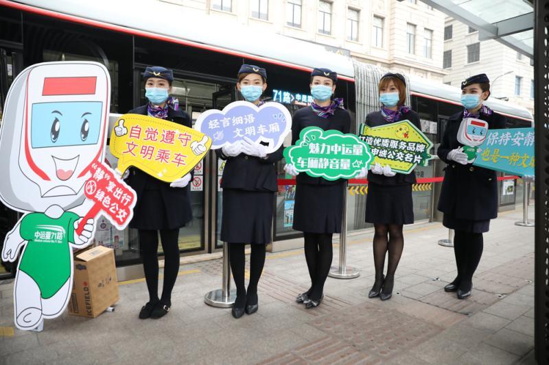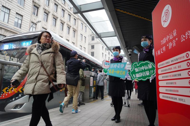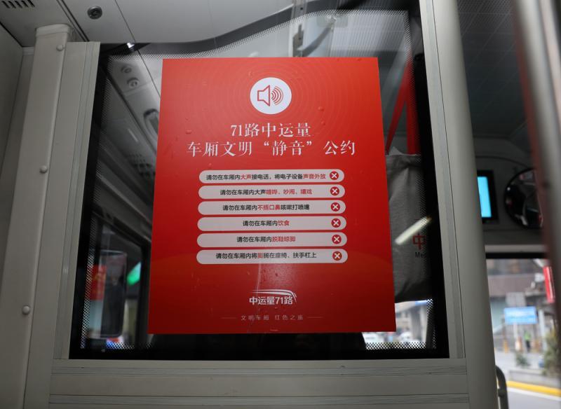 继高铁、地铁相继推出静音措施后,上海地面交通品牌线路中运量71路也积极作出响应,在全线倡议市民文明出行、文明乘车、文明静音。”