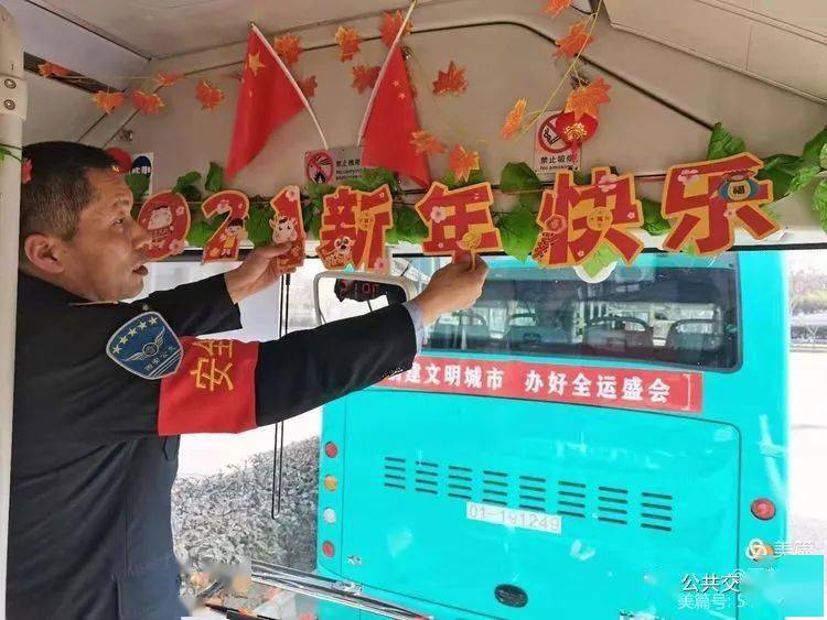 一公司198路邢永健师傅像往年一样,今年主动选择在岗位上过年,邢师傅准备了红灯笼、中国结、福字等春节小饰品,打造出一辆“特殊”的春节主题车厢,一面面火红的国旗飘扬在车厢,一张张喜气的福字窗花细心地贴到车窗上,火红的灯笼、精美的中国结,都能让乘客们提前感受到温馨喜庆的节日气氛。