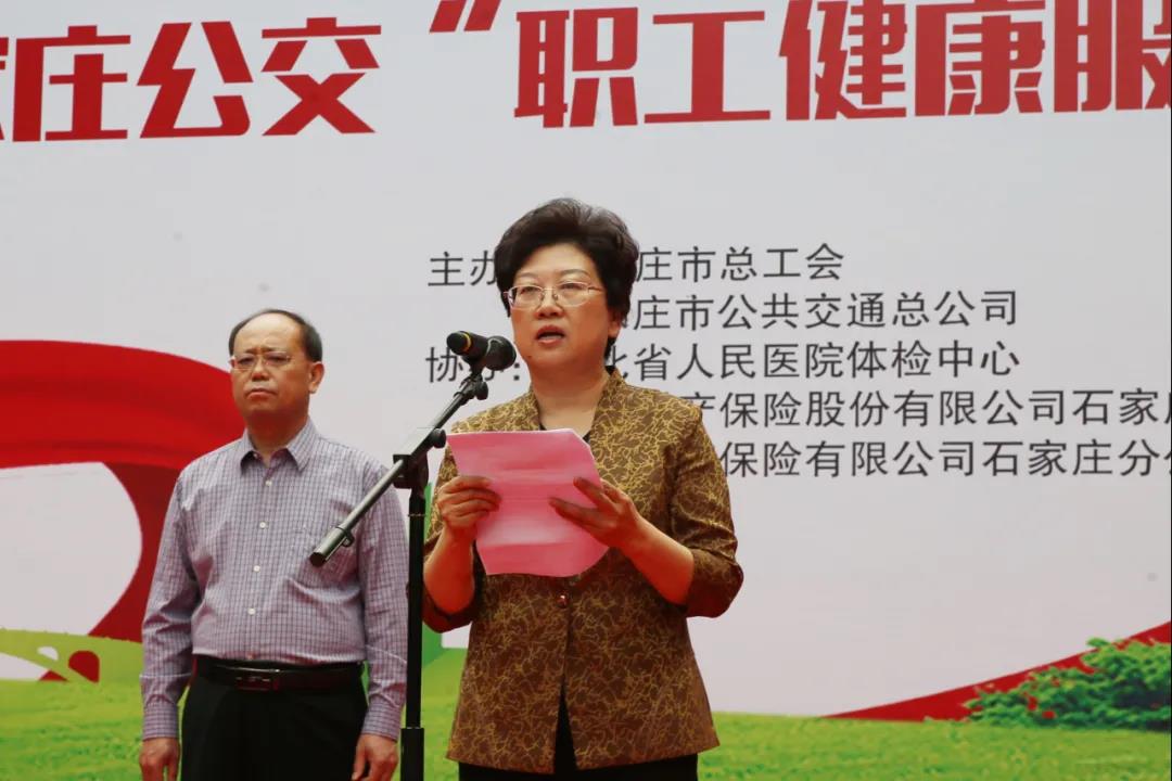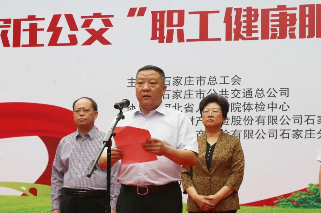 石家庄市人大常委会副主任、市总工会主席李志宏,石家庄市总工会党组书记、常务副主席田志,石家庄市交通运输局党组成员、局直党委书记、工会主席张宏贵,石家庄市总工会党组成员、女职工委员会主任王秀然,石家庄市总工会建设工会主席常前,河北省人民医院体检中心副主任郝志华等领导出席活动。公交总公司党委书记刘东辉、总经理傅士君等总公司领导和公交干部职工、爱心企业代表及新闻媒体共计300余人参加了活动。仪式分为“与平安相伴,让爱在岗位上闪光”、“与健康相随,让爱在身心中永驻”两个板块进行。