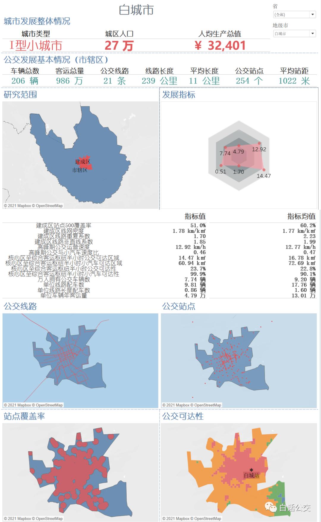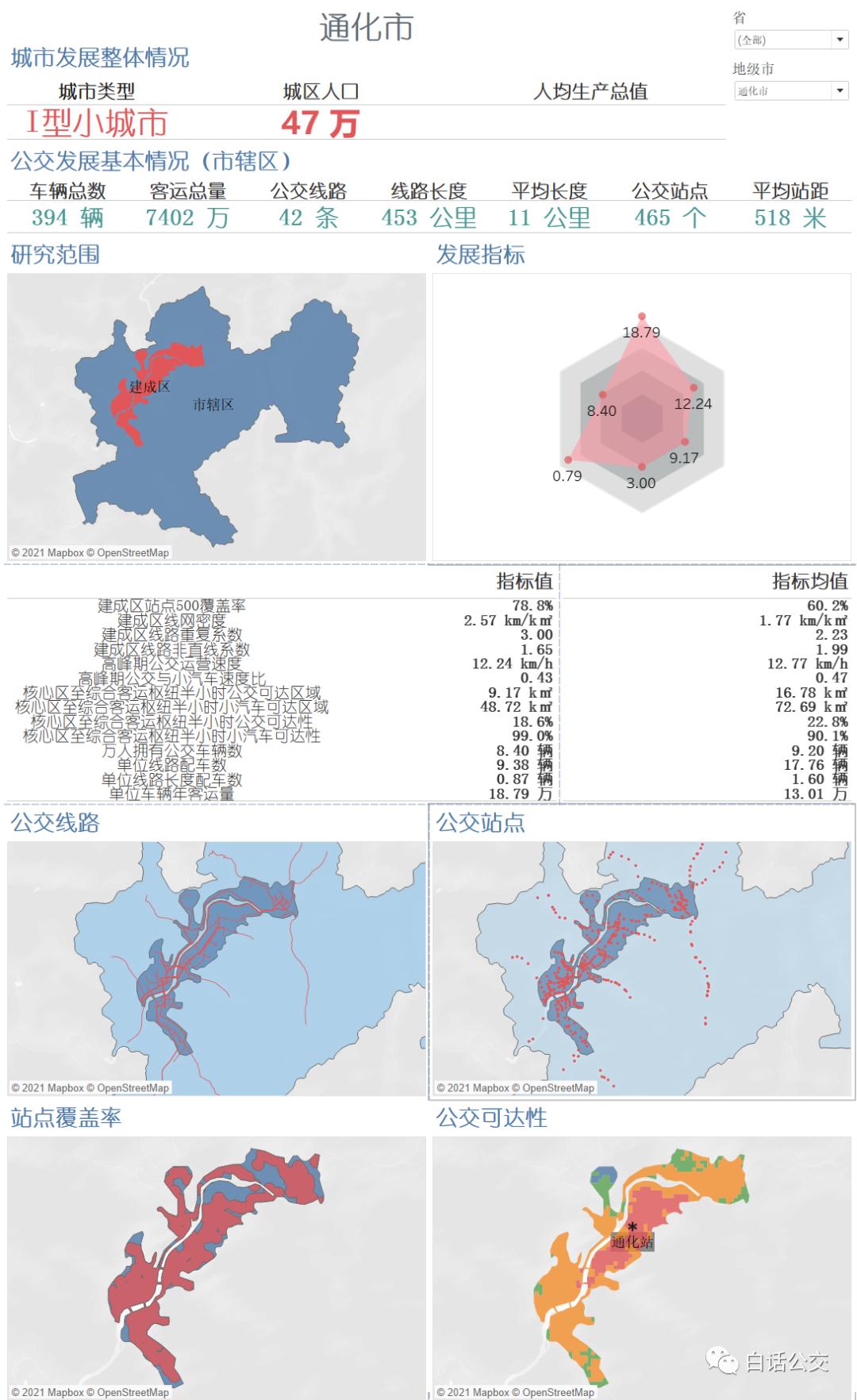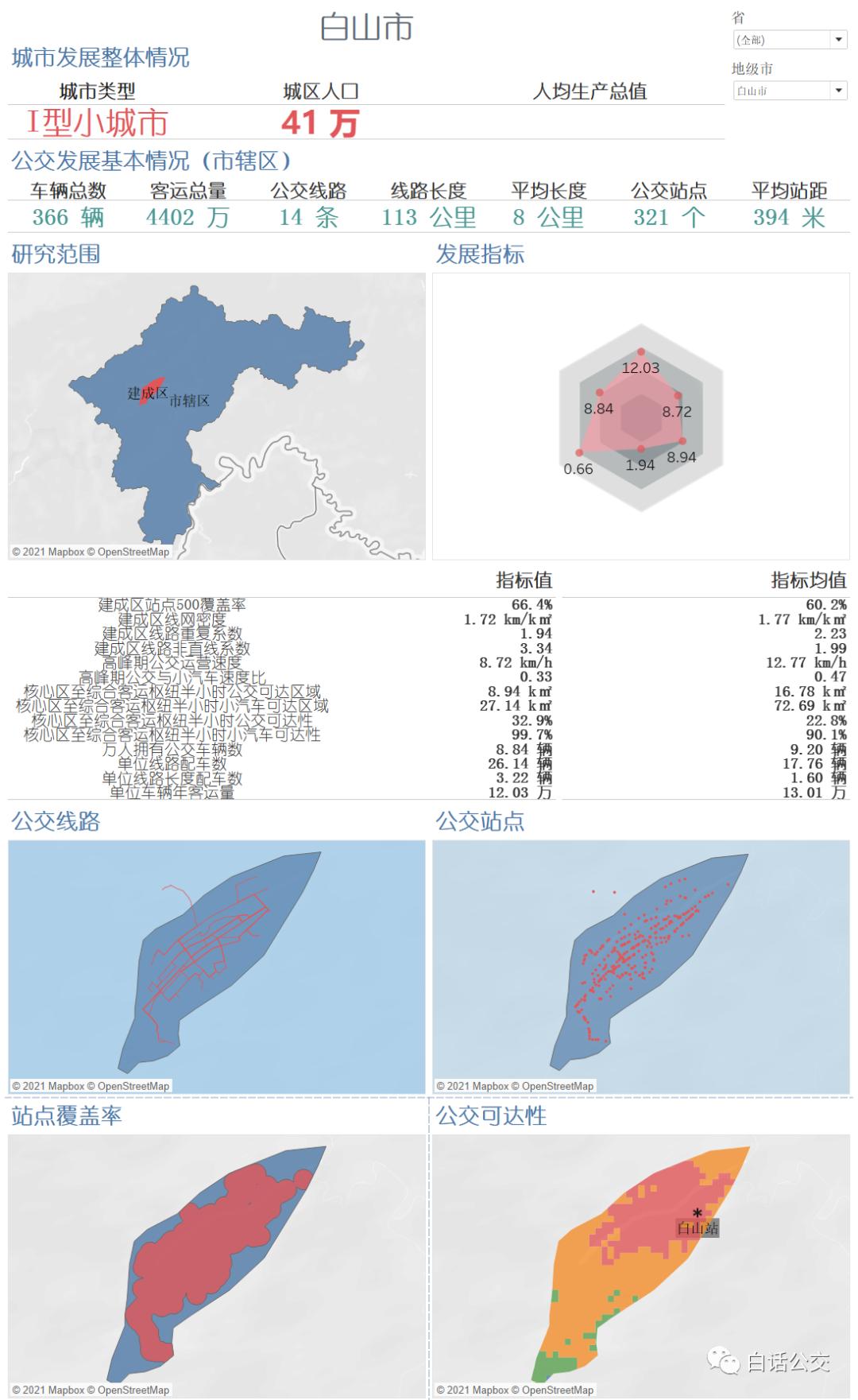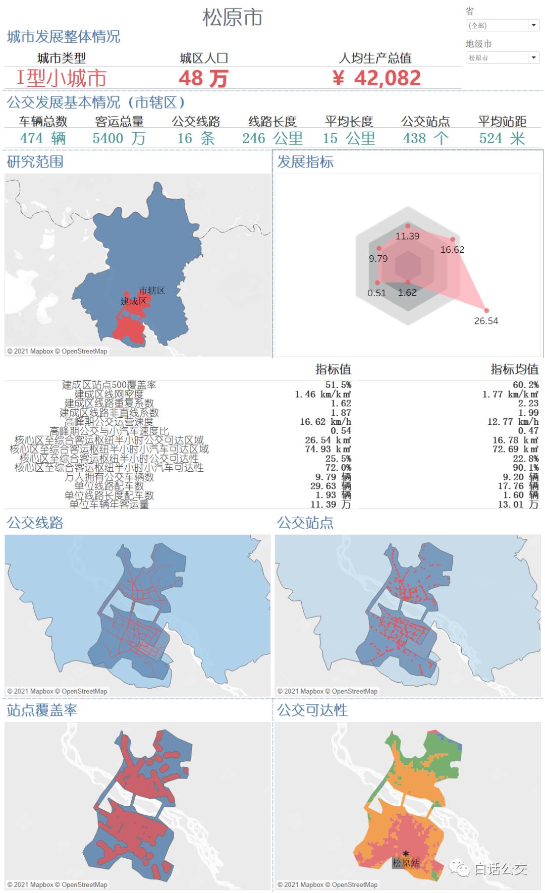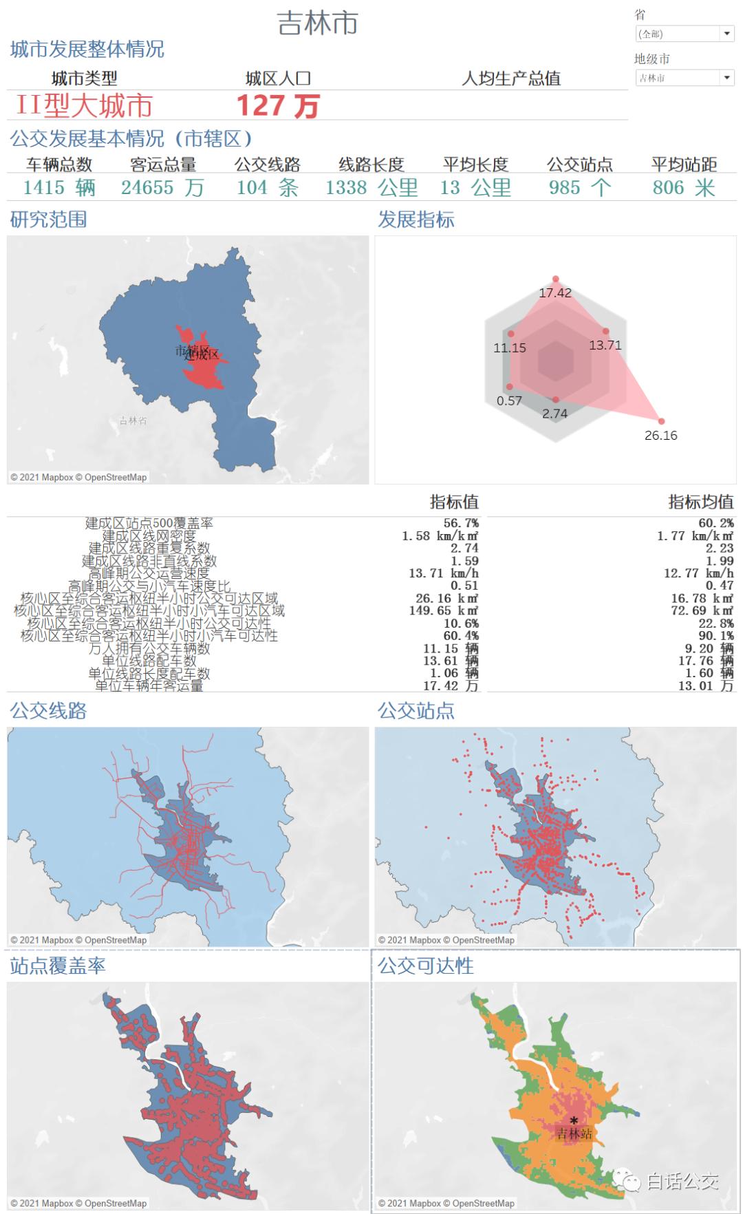 站点覆盖指标:中心城区建成区范围内公交站点500m平均覆盖率为60.2%,其中覆盖面积最大的为吉林市(140平方公里),最小的为白山市(18平方公里)。(未剔除范围内的江河绿地山地等)