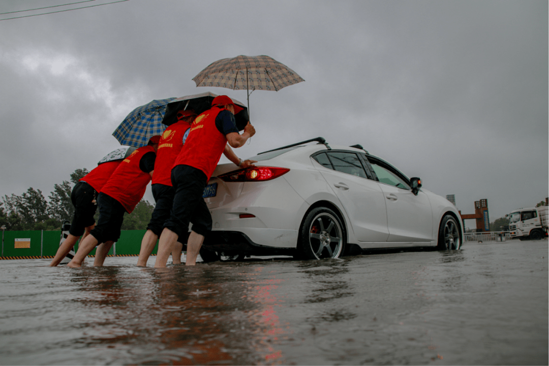 第四运营公司各级管理人员分赴各个线路站点,了解车辆运营情况,叮嘱车长注意行车安全。在八大街公交场站内,积水最深处达到40厘米,车队管理人员挽起裤腿带头冲向雨中,用大锤和撬棍清理下水口堵塞的树叶杂物及砖石;104路的车长们在紫荆山公交站牌处为市民撑起了爱心雨伞;在东三环双湖大道,市民张先生由于判断失误,导致车辆在水坑中突然“趴窝”,无法继续前行。手足无措之际,212路车长李岚、耿明生、侯俊峰挺身而出,放下手中的雨伞,在暴雨中艰难将车推到了安全地带。