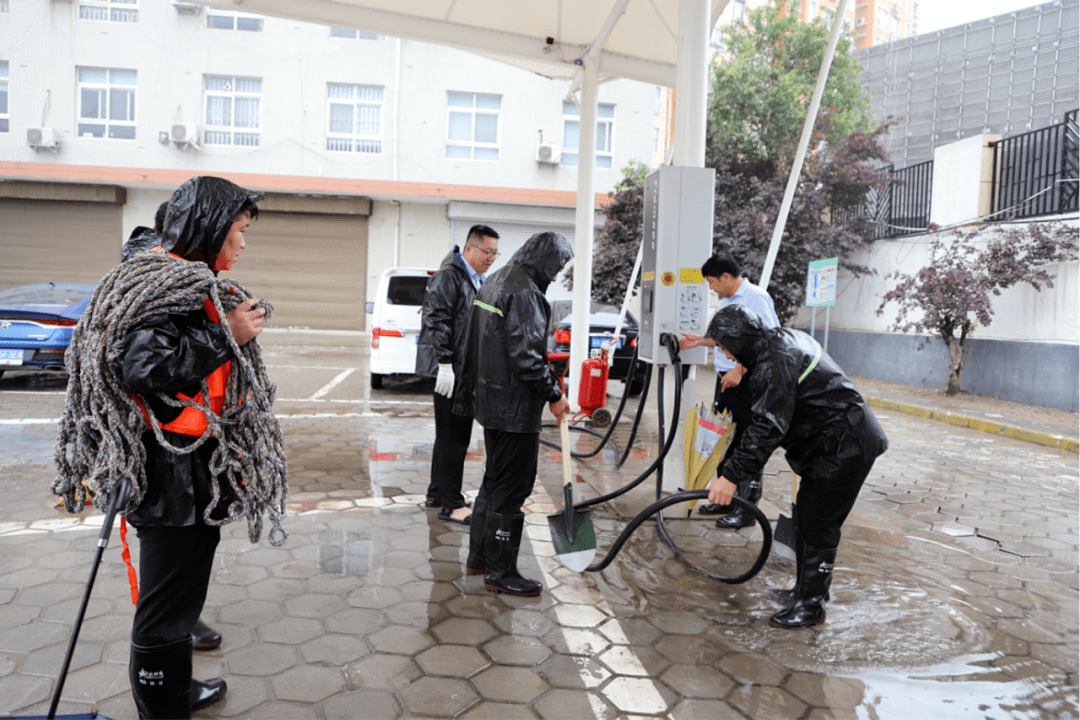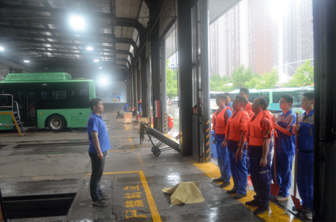 第五运营公司组织全体管理人员及党团员志愿者对各场区周边排水口、地沟是否存在堵塞情况进行逐一检查,及时进行疏通、抽排积水,对积水路段运营车辆进行指挥疏导,保证车辆正常运营;并对各场区、调度室、职工休息室用电情况进行反复检查确认,确保雨天用电安全。