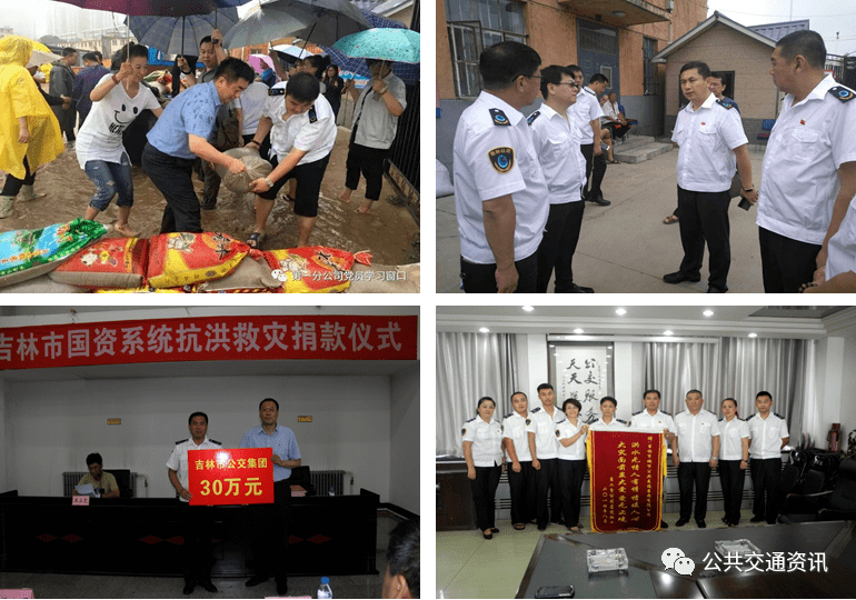 我们全力以赴做好我市各类大型活动的出行保障工作,四届“吉马赛”,运送和疏散赛事相关人员10万余人次,临时调整线路274条,第一时间疏散上万群众,充分保障赛事当天多样出行需求。5年累计更新车辆453台,其中,纯电动车303台,以绿色舒适出行守护吉林碧水蓝天。组织开展“无车日”活动,定期驻站宣传绿色出行,低碳环保理念不断深入人心。2018年,企业被交通运输部、公安部、国管局、中华全国总工会评为绿色出行宣传月和公交出行宣传周活动成绩突出集体。针对客流集中的线路、站桩做好各项安全、法律法规等知识的普及,以企业自身影响力扩大宣传效果和范围,倡导社会正能量。在发生急难险重等紧急事件时,迅速响应市委、市政府号召,安排车辆保证运输。2017年7月,面对两场暴雨洪灾,第一时间组成救援应急车队,昼夜兼程奔赴灾区开展救援。共计出车144台次,疏散人员4000余人,并在灾情警报解除后及时送灾民返乡。我们还筹集粮油等救灾物资随车送往灾区,克服资金压力向灾区捐款共计捐款54万余元(含员工捐款24万余元),展现了公交人在危难面前勇于担当的国企情怀,企业荣立市抗洪救灾集体二等功。2020年战“疫”期间,接送某部队士兵归队,转运日韩返吉人员到指定地点隔离,组织车队迎接驰援武汉的英雄回家。发送200个班次的专车,护送支援舒兰的医护人员奔赴前线。为博大生化等企业设计29条定制班线,发送1.3万余班次,保障特殊时期的出行需求。此举刊登在省疫情防控工作专报和《每日政务要情》中,并作为我市疫情防控复工复产重要举措写入人民日报新媒体通稿中,得到了各级政府的一致肯定,用每一次的公交“逆行”诠释了国企责任与担当。