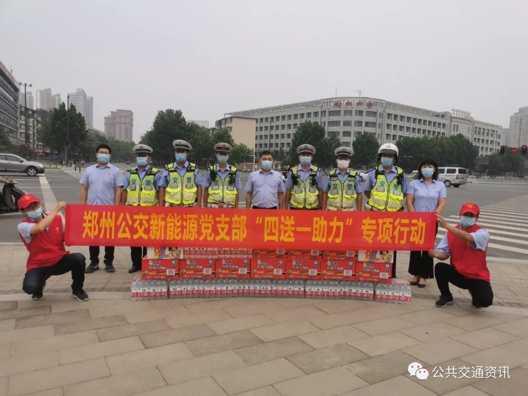 增强惠民之心、坚持服务利民。为方便市民出行,7月28日—8月28日市民可以免费乘坐公交车辆。集团公司党委开展“四送一助力”专项行动,新成立的公交新能源公司积极承担社会责任,党支部书记侯扬带领党员志愿者分别来到郑州交警三大队所管辖区和金水区南阳路办事处福园社区、防疫点等,送上矿泉水、方便面等防暑应急物品以及消毒液等防疫物资表达诚挚的敬意和深切的问候。