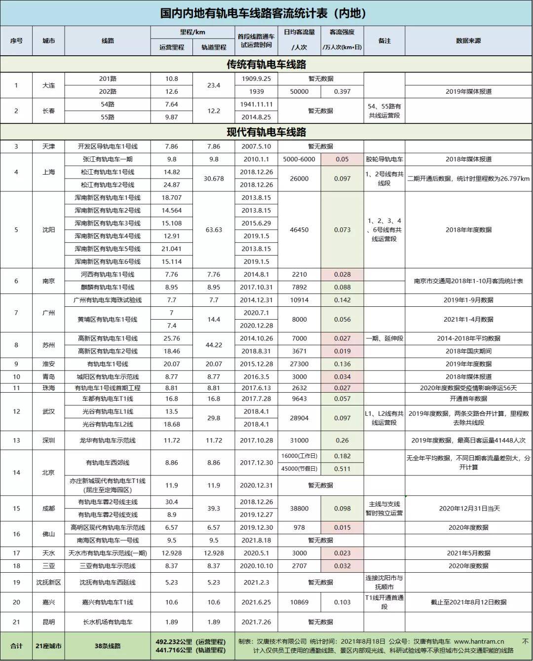 6、由于我国有轨电车运营公司一般不每日在网站、媒体等公布客流数据,因此本统计中的客流数据大都源于媒体报道,部分城市信息滞后,部分城市媒体报道的为特殊时间段的客流情况,不代表年平均水平。如相关单位或知情人士了解具体数据,欢迎在评论区指出更正。