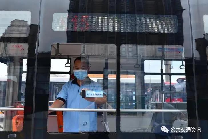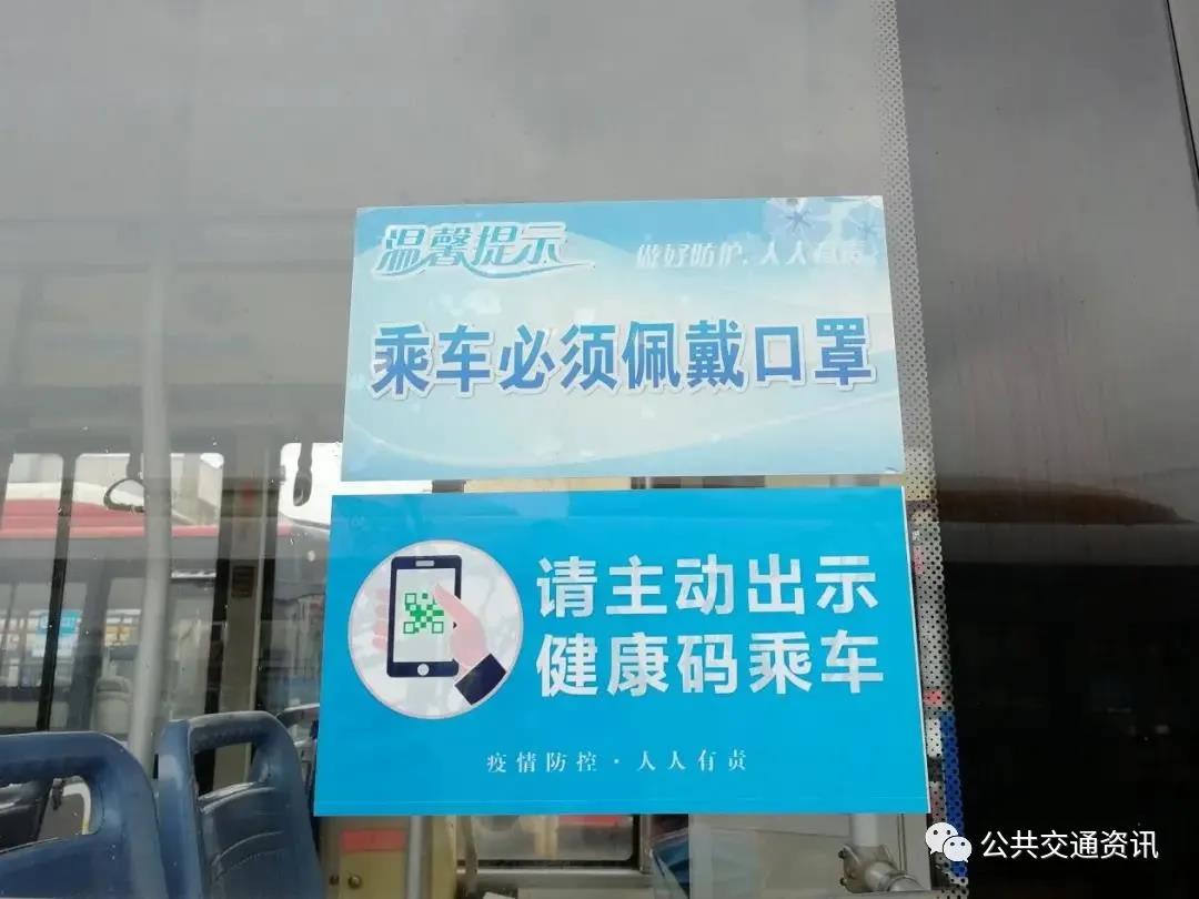 乘坐公交车记得佩戴口罩,请主动出示健康码哦!