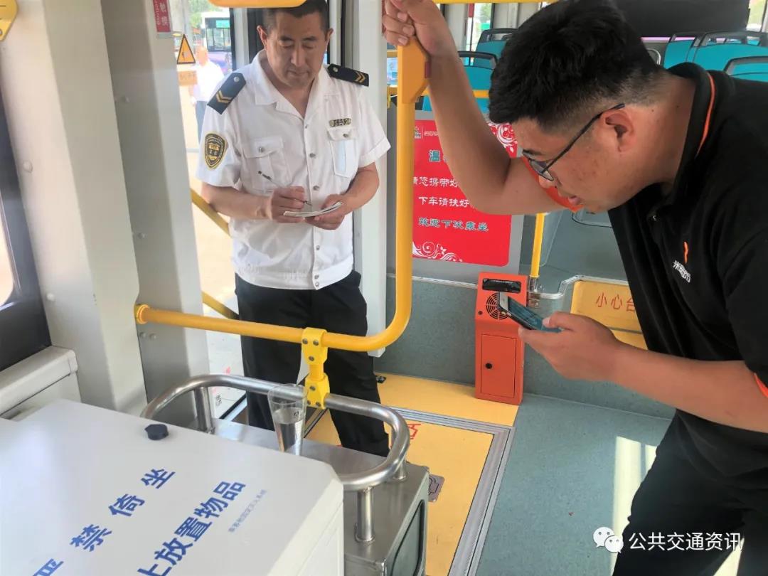另一边,在温馨巴士山东大学公交枢纽场站,工作人员在公交车内放置一个盛满水的量杯,公交车行驶在连续拐弯、凹凸不平的路面上,通过车辆到达终点对碗内剩余水量的计算,评判驾驶员的驾驶是否平稳,让驾驶员有意识地做到起步稳、行驶稳、转弯稳、停车稳,提高乘客乘坐温馨巴士的舒适性和安全性。