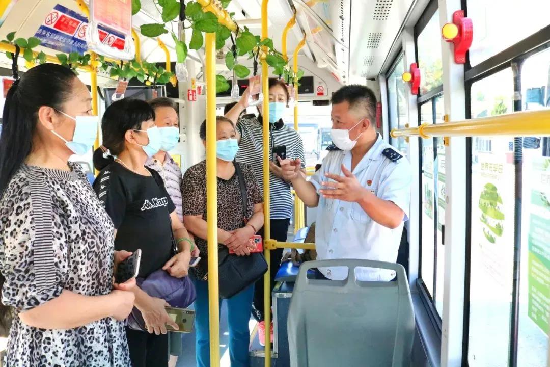 公交志愿者随车而行,讲述公交车型车质、节能减排方面的发展变化……山东省青岛公交集团市南巴士公司打造“畅话绿色出行 一路美好相伴”宣讲专车。