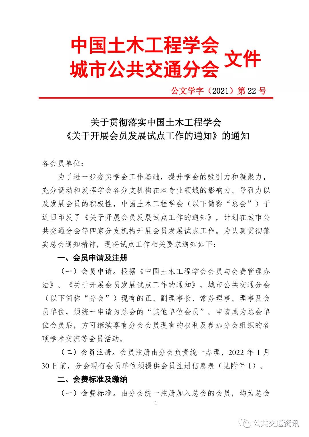 (一)会员申请。根据《中国土木工程学会会员与会费管理办法》、《关于开展会员发展试点工作的通知》,城市公共交通分会(以下简称“分会”)现有的正、副理事长、常务理事、理事及会员单位,须统一申请为总会的“其他单位会员”。申请成为总会单位会员后,方可继续享有分会会员现有的权利及参加分会组织的各项学术交流等会员活动。