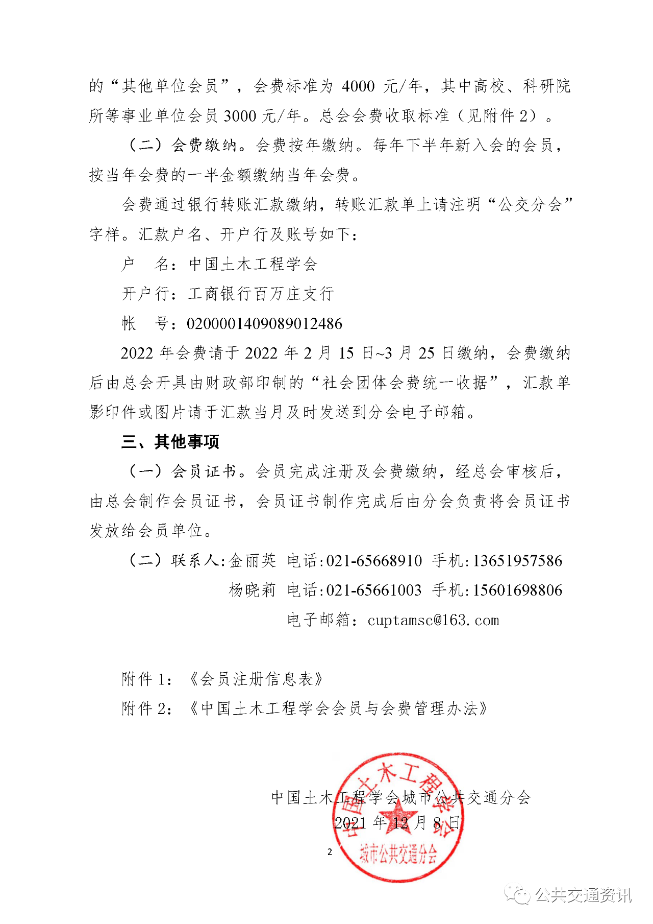 会费通过银行转账汇款缴纳,转账汇款单上请注明“公交分会”字样。汇款户名、开户行及账号如下: