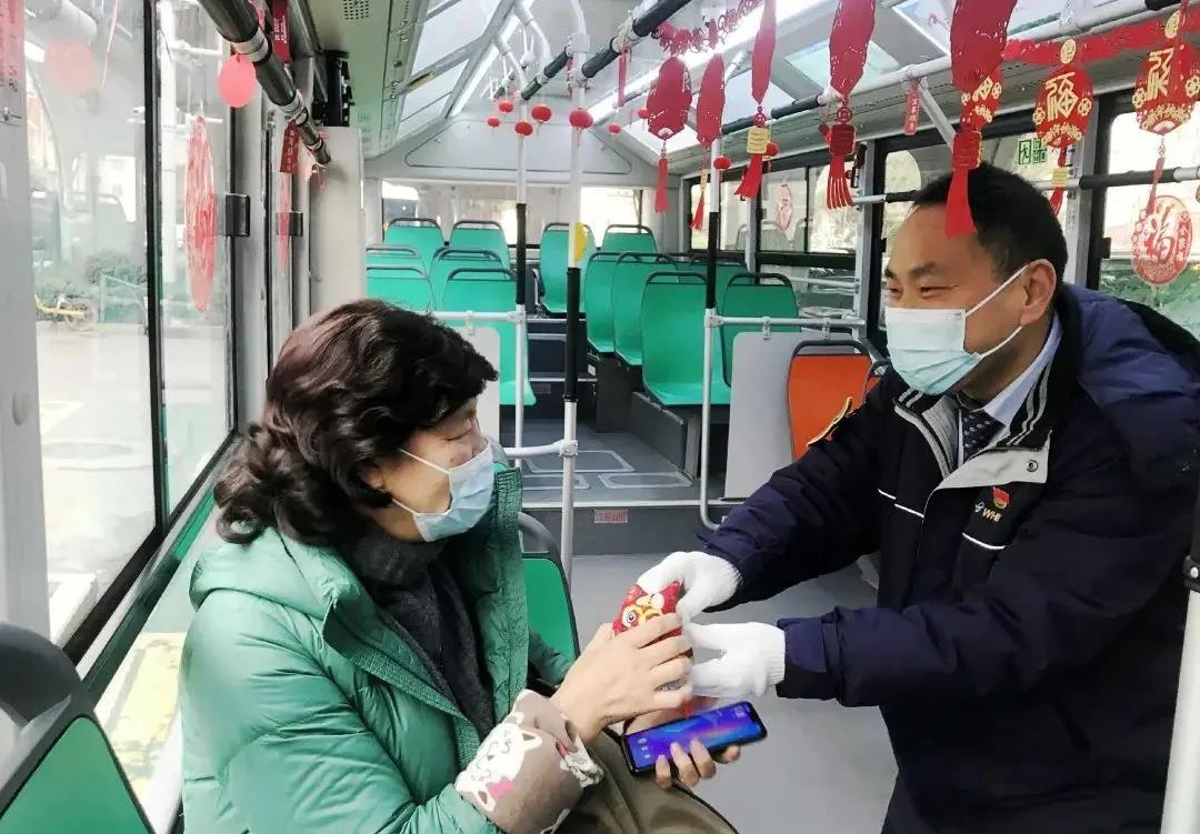 大年初一,乘客一登上548路2567号车,浓浓的年味扑面而来,这辆车就是548路的“拜年”号。