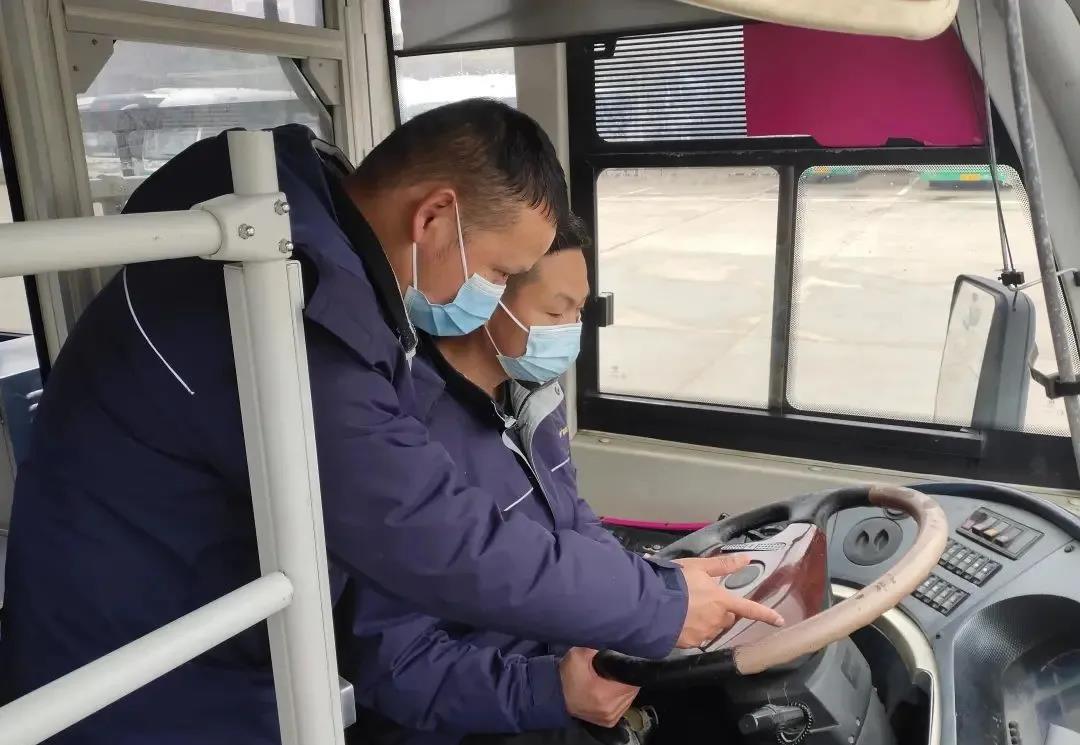 大年初一一大早,朱文祥便来到站点检查车辆状况,等待发车。
