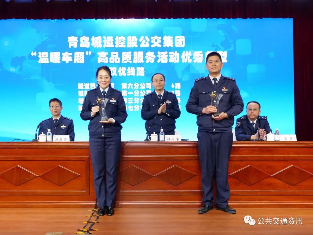 启动仪式上,青岛公交集团党委委员、副总经理李罡宣读《关于表彰“温暖车厢”高品质服务活动优秀典型的决定》,总结“温暖车厢”高品质服务活动成效,对活动中勇于创新、奋发有为、温暖有爱的先进集体和模范个人进行表彰。“‘温暖车厢’高品质服务活动中,广大干部职工凝心聚力,坚持以乘客为中心,用高质量服务赋能企业高质量发展,实现了集团管理和服务的双向提质,取得了预期的效果。”公交集团党委委员、工会主席张莉表示,活动开展过程中,广大职工立标树标、追标超标,在技术革新、服务提质、管理增效方面成果显著,特别是24名“温馨服务大使”,在行业一线切实发挥示范作用,以创新实践成果为“温暖车厢”持续增温。